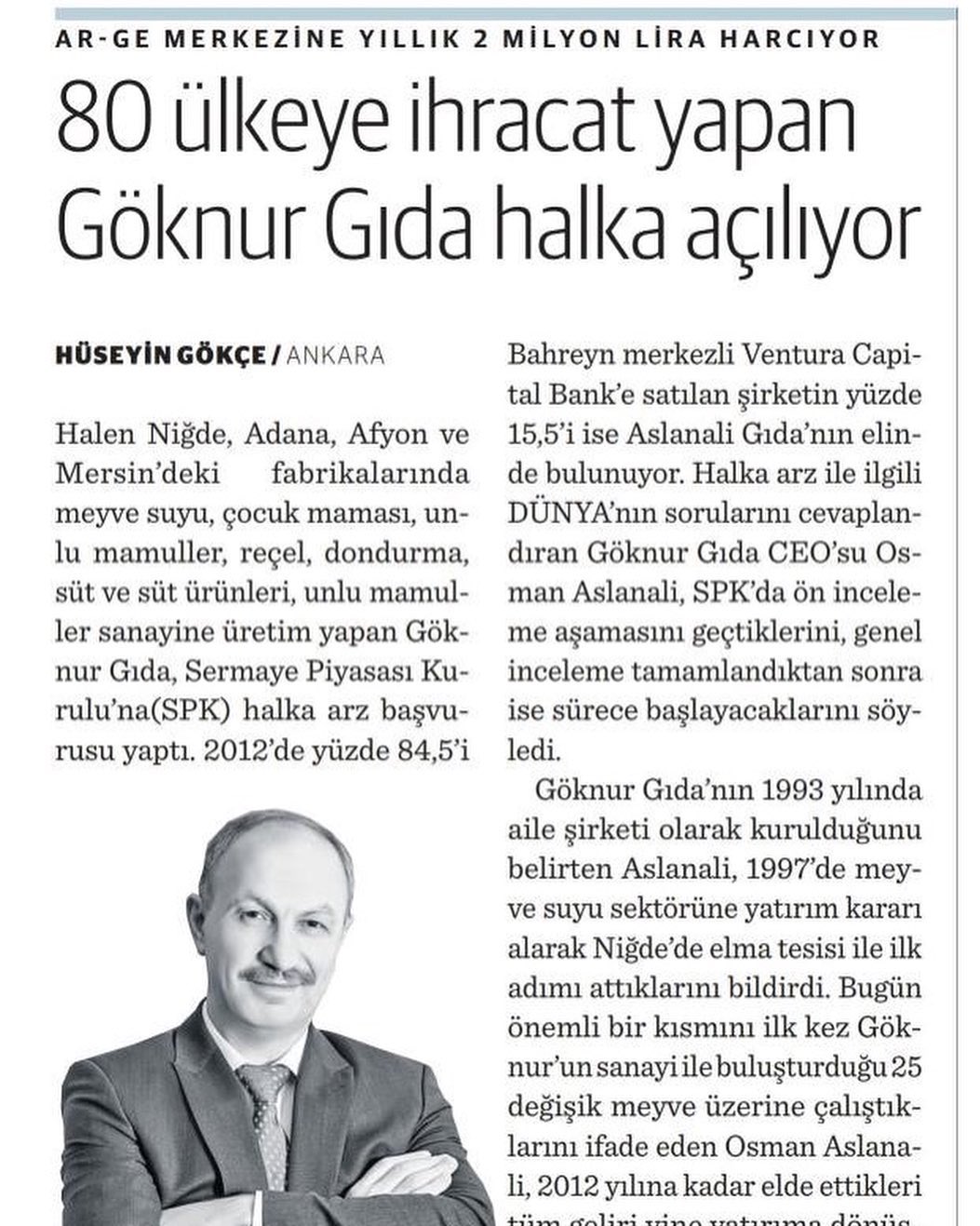 Osman Aslanali, CEO of Göknur Gıda, answered the questions of Hüseyin Gökçe from Dünya Newspaper.